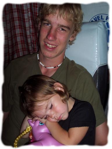 Bradley and Irie on a long bus ride